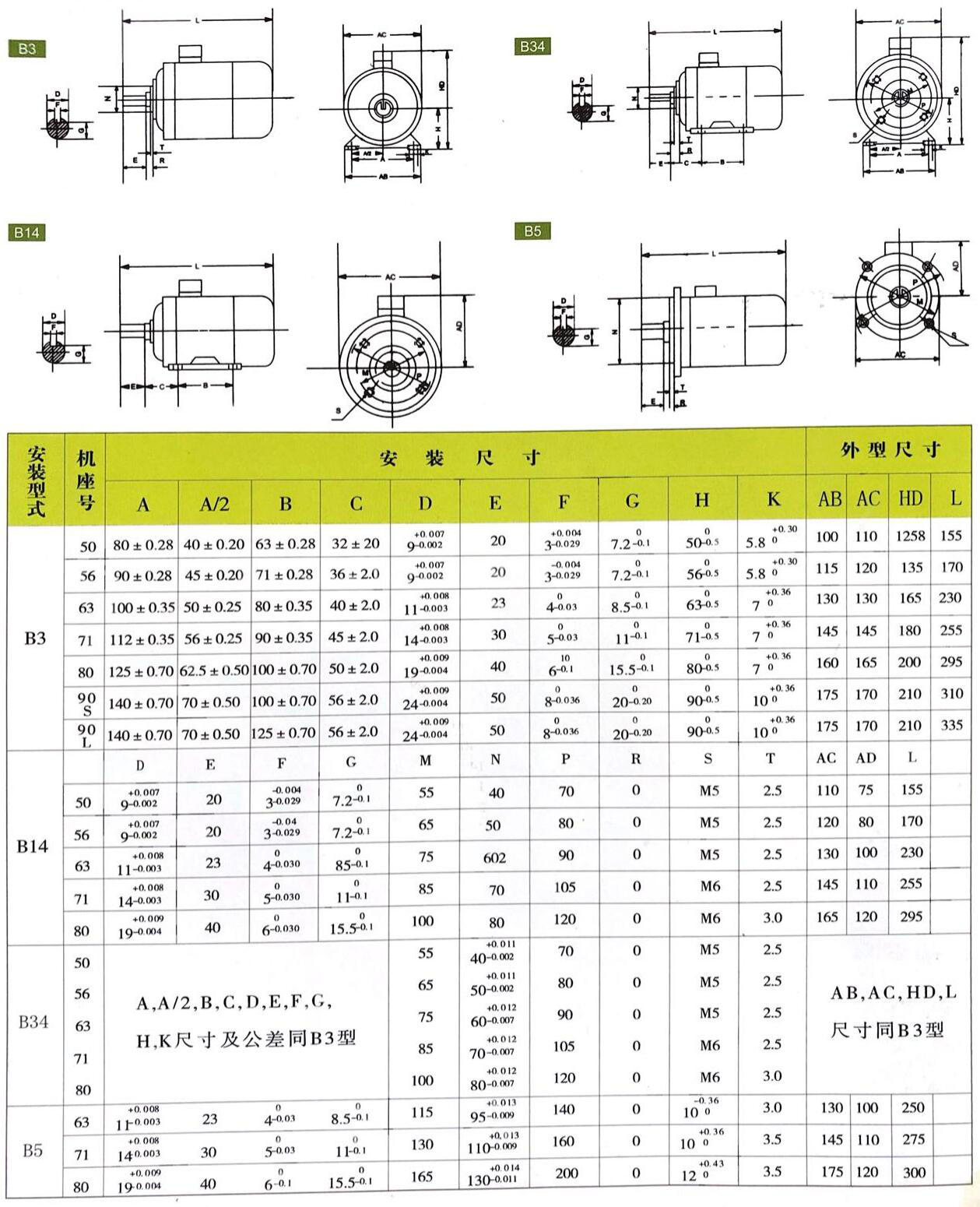 (4)臥式機座不帶底腳、端蓋上有小凸緣IMB14